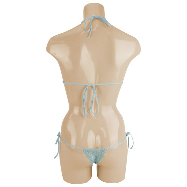たくさんのお花をちりばめた可憐な総レースブラ&ショーツ。●爽やかなサックスカラー●あらゆる箇所がうっすら透けて見えるシースルー生地を使用●繊細で美しい花柄刺繍入り●自由にサイズ調節ができる紐タイプ●Mサイズ・日本製。妖艶で美しいデザインが大人の色気感じさせます。普段使いにもデートの日にも役立つ大人のランジェリーです。