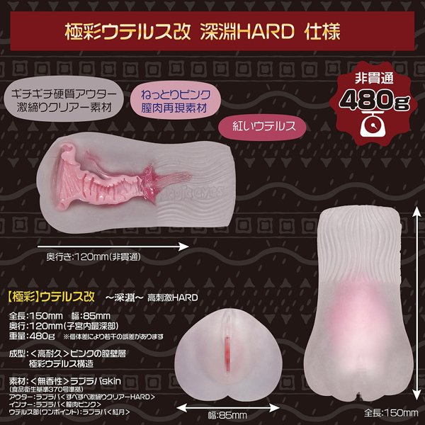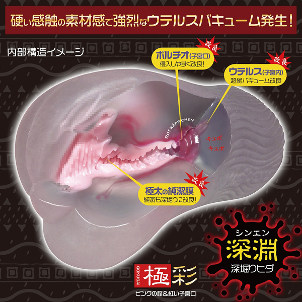 全面改良された膣内構造で転生する、極彩ウテルス改深淵高刺激ハード。はっきりとした使用感の為、深堀溝に改良し子宮口も侵入しやすく逸れにくい形状に改良。ウテルス内は超絶バキュームで搾り取られます。厚労省:食品衛生法第370号準拠素材を採用した「ラブラバSkin」を使用しております。●ローション付