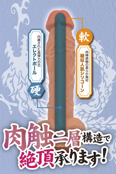 ディルドの内側に内蔵された高弾力素材が気持ちいい、疑似人肌シリコンの2層構造が特徴の絶頂仕事人・青龍。柔軟性に富んだ21cmの本作は、まるで本物の肉棒を挿入しているような感触を実現!吸盤が付いているので床に張り付けたり、壁や浴槽のお好きな場所で自由自在にお楽しみいただけます。高弾力を生み出すエレクトポールと生の肉棒感触をぜひお試し下さい!