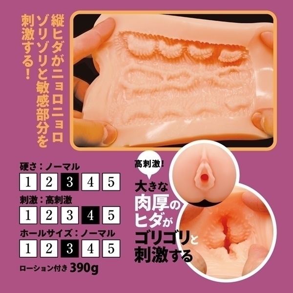 旅行の行き先の温泉が混浴と聞き水着を用意してくるのもかえって男子の性欲を刺激していまい…MOUSOU−TOYSの新作「わからせ温泉水着女子」はパッケージを開けると2コマ目のイラストが現れる「大興奮!即堕ち2コマシリーズ仕様」となっております。ニョロゾリ高刺激の非貫通オナホールは 重量390gと扱い易い大きさ!サイドと下部の大きく異なるギミックを搭載。サイドは大きな肉厚のヒダがゴリゴリと、下部はゾリゾリとした縦ヒダがニョロニョロゾリゾリと敏感部分を刺激!更に本体を回転させると全く別の挿入感が味わえます!国内設計&国内製造で安心安全!