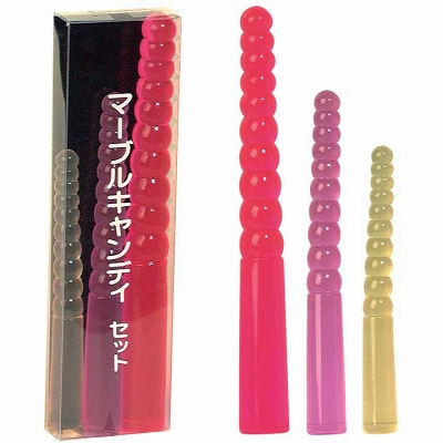 アナルスティックの「マーブルキャンディセット」!アナル入門用としても最適な大・中・小のアナルスティック3本セットです!特殊素材がデリケートゾーンに優しくフィットし、自由自在に動き回る!少しずつサイズをあげていってもよし、最初から大物に挑戦するもよし!先端をU字型に曲げられるほど柔らかいので、幅広いお客様から人気があります。アナルスティックの「マーブルキャンディセット」!