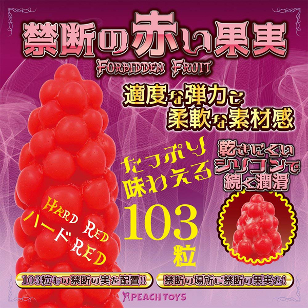 103粒の果実が内部をゴリゴリと刺激する感覚!葡萄のような形状で表面に球状の突起がいくつも配置された日本製のディルド。底は吸盤付きで、貼り付けられる場所ならどこでもOK!バックや騎乗位など、様々な体位でのプレイが可能♪スタンダードと比べてしなるような柔軟性はなく、名前の通りハードな高弾力ボディで粘膜を押し広げながら刺激するため、通常のディルドでは物足りなくなった中〜超上級者さん向けの商品となっています。