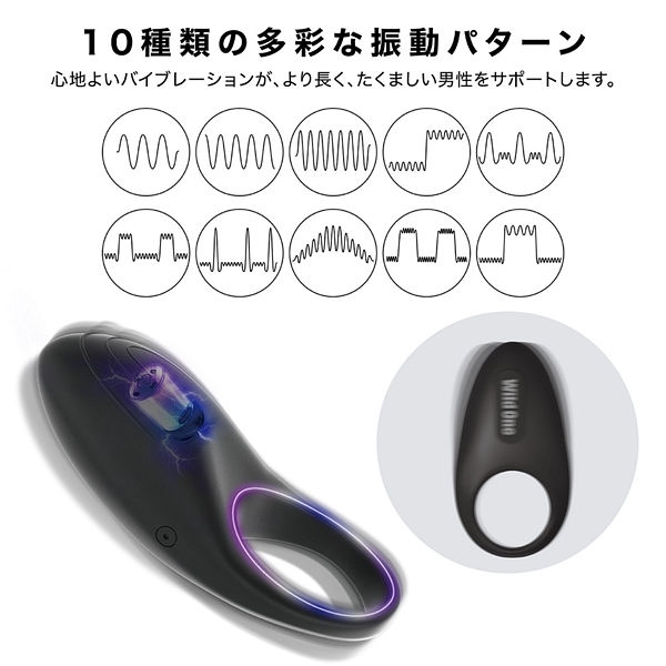 パートナーと溶け合い、もっともっと気持ちよくさせたい!もっとイカせたい!そんな男性の欲求を満たしてくれる電動コックリングです♪ワイルドワンのAV撮影現場から生まれた本作は、「もっともっと」を形にした女性を喜ばせる強さを求める男性の必須アイテム!威風堂々とした出で立ちであなたの野生を呼び覚まし、シンプルながらも完成された究極のフォルムが無理のないつけ心地を実現♪ナチュラルなフィット感が二人のラブシーンを濃密に演出し、10パターンの多彩な振動種類を搭載しながら締め付けによる血流アップと心地よい振動で双方ともに気持ちよくさせてくれます!電源はUSB充電式でIPX7等級の完全防水仕様♪ユーティリティもバッチリでプレイ後の丸洗いによりメンテナンスも簡単です!