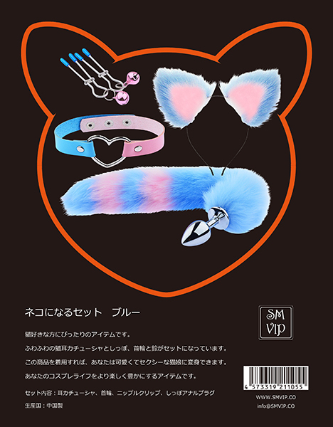 パッケージ:30.0×22.0×3.0cm 本体:耳カチューシャ約20cm×約20cm・首輪直径約12〜14cm・ップルクリップ(ハサミ口最大約1.6cm・長さ約5.6cm)・しっぽアナルプラグ直径約2.7cm・しっぽ長さ約40cm セット内容:耳カチューシャ、首輪、ニップルクリップ、しっぽアナルプラグ 原産国:中国 重量:本体135g