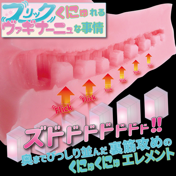 四角いキューブを奥までびっしりと配置!ギザギザ溝入りのノコギリ状壁で左右を責めつつ、四角のフリックヒダで裏スジをくにゅくにゅと刺激する♪ヒダ感溢れるライトニング刺激に身体中をビリリと快感が駆け巡る!素材には累計500万個突破した高伸縮&高弾力のバンジータッチを採用。重量230g、全長16cmの非貫通ハンディオナホ◎ねっとりローション付、日本製