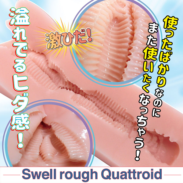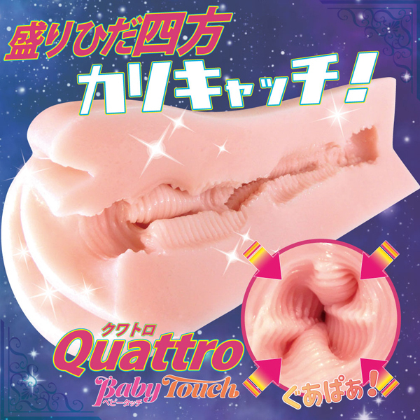 ひだが盛り上がれば快感も盛り上がる!溢れ出るヒダ感でQuattroカリキャッチ!4方向からの盛りひだを敏感キャッチ。使ったばかりなのに、またすぐに使いたくなっちゃう盛りひだ感。激ひだ快感で盛り上がってイキましょう!もちもち高弾力●ベビータッチ素材●ローション付