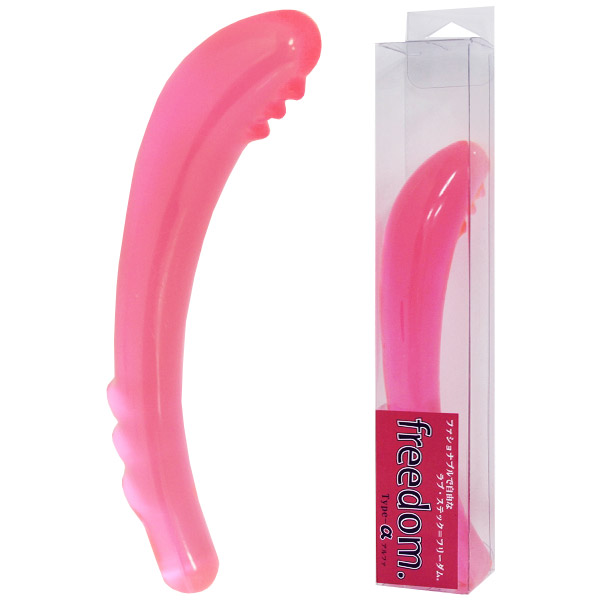 超人気!初心者さんにも安心な、ソフト素材のスティックディルド。緩やかな曲線を描くクリアピンクの「アルファ(α)」は、太さの違う両端のそれぞれに3段階のイボを配置。アソコはもちろん、アナルにも使える優れものです。つるりと入る柔らか素材なので、初心者の方にも安心してお使い頂けます。機能性と見た目の美しさを兼ね備えた、人気のディルドです。