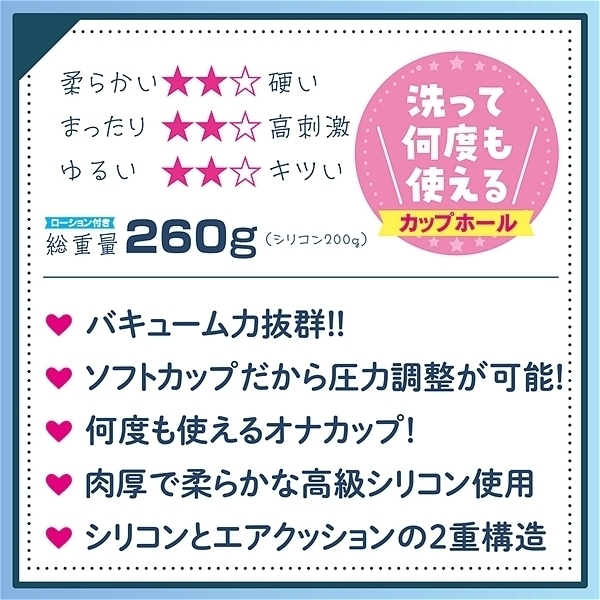 リアルエロゲシチュエーション!DT公式コラボ商品。新感覚!ソフトカップタイプ。ソフトカップだから圧力調整が可能!シリコンとエアクッションの2重構造。シリコン部分を外して洗える!ローション付き。●笠間陽菜乃