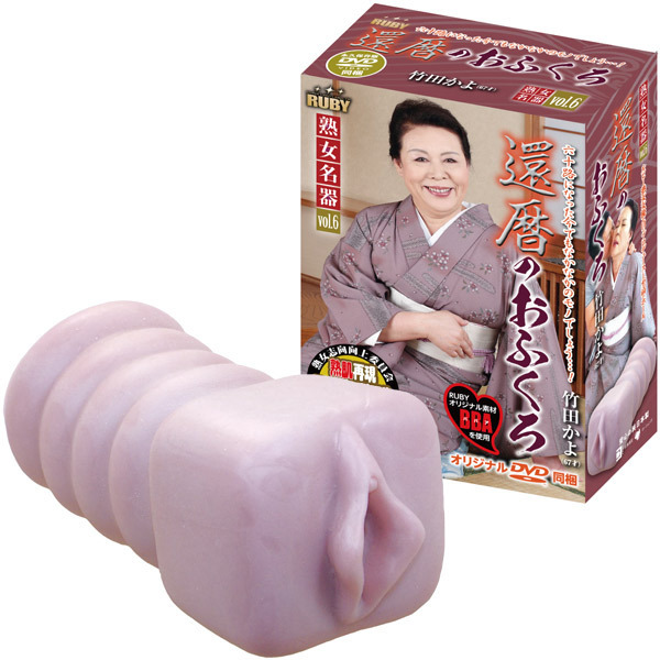 RUBYの熟女名器なら竹田かよ。ルビーブランドの中でも極上と名高い極上生名器!還暦を迎えた熟女の名器を再現した非貫通型オナホです。●RUBYオリジナル素材「BBA」使用。●六十路になった今でも現役バリバリ「竹田かよ」の極上名器。●ヒダとツブでつくりあげた複雑な内部構造。●挿入口の先に大きなカーブ。●ツブとイボが交互に刺激する4つの凸凹スポット。●オリジナルDVD同梱。●ローション付き。熟女だということを忘れさせるほどしっかりとした締め付けに驚きを隠せない!熟女でしか味わえない刺激と快感にどっぷりハマる名器のオナホ。その名も「還暦のおふくろ 竹田かよ」です。