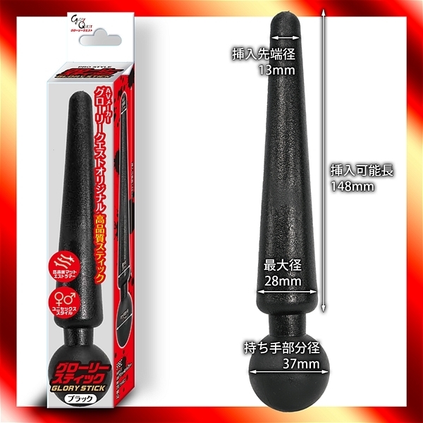 グローリークエストの撮影で実際に使用中!ア〇ルAVの鬼才「トリンドル田中監督」完全監修、グローリークエストオリジナルスティック!男女兼用だからア〇ルにもマ○コにも使えます!初心者にも上級者の普段使いにも、さらにはAV撮影にもぴったり!肌触り滑らかで程よい硬さ、それでいて優しい挿入心地のこだわり形状。大きさ、柔らかさ、形、全てにこだわったグローリースティックで今夜も満足!