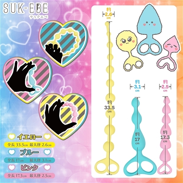 夢見る気持ちを忘れない人のための幻想的なアイテム。「いーとみー」が登場しました。内容物はプラグ3個セットとなっており、前作の「どりんくみー」と比べると少しだけ成長したサイズ感となりました。「いーとみー」は名前の通り可愛らしい見た目をモグモグと食べるように使います。色とりどりのキュートなデザインは、まるで夢の世界から抜け出したような幻想的な魅力を放ちます。一瞬であなたを童話の世界へと連れていくことでしょう。また使いやすいサイズと滑らかな最高級シリコン素材で作られており、快適で安心感のあるプレイが可能です。ベテランの方でも楽しむことができ、心地よい刺激に包まれることでしょう。ローションのような滑らかな液体を使用する事で、夢体験がより深まるのでオススメです。「いーとみー」は、あなたの日常を彩り可愛らしい幻想の世界を叶えるパートナーです。さぁ一緒に冒険を始めましょう。