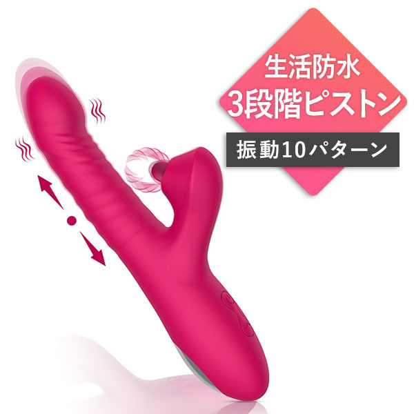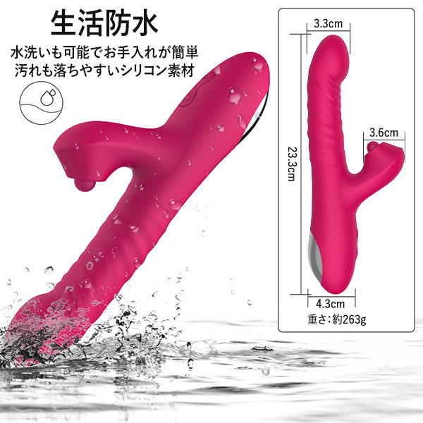 ピストンで膣を責めつつクリトリスを絶頂刺激!気持ちの高まりと共にピストンスピードを上げ、更にはクリトリスを高速ノックで最強クンニ、あなたを絶頂へと導きます♪生活防水でお手入れも簡単、衛生的に保てます。クリを刺激する突起が振動パターンによって踊るような動きを見せ、今まで感じた事のない快感を与えます。<使い方>電源ボタンを長押しで電源を入れ、電源ボタンを短押しでピストンスピードを3段階で調整、唇マークのボタンを短押しする度に10パターンの振動が切り替えられます、電源ボタンを長押しで電源を切ります。